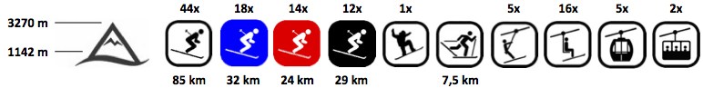 - Délka sjezdových tratí: 85 km