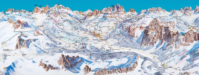 Nejvýše položené tratě pokrývá sníh až do května, proto je tolik vyhledávají milovníci jarního lyžování. 142 km sjezdovek v okolí Cortiny láká zejména svou různorodostí. Najdeme zde i lyžování na skutečně ostrých terénech a kromě upravených tratí i volné svahy všech obtížností - nejen lyžování pro zdatnější lyžaře, ale i pro začátečníky. Své příznivce si získá každý zdejší areál, například vyhlášené středisko Pocol-Tofana, kde si můžete vychutnat lyžování na vrcholových sjezdových tratích, na kterých se jely olympijské závody. Další je Faloria-Cristallo s extrémně strmou tratí Staunies. Menšími středisky jsou Misurina, Guargné-Mietres, Auronzo a S.Vito di Cadore.