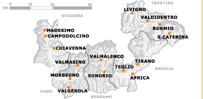Nejdůležitějším střediskem údolí je Sondrio, mezi další důležitá centra patří Aprica, Morbegno, Tirano, Bormio či Livigno. Středisko Aprica se nachází v části Tirano Media Valle.